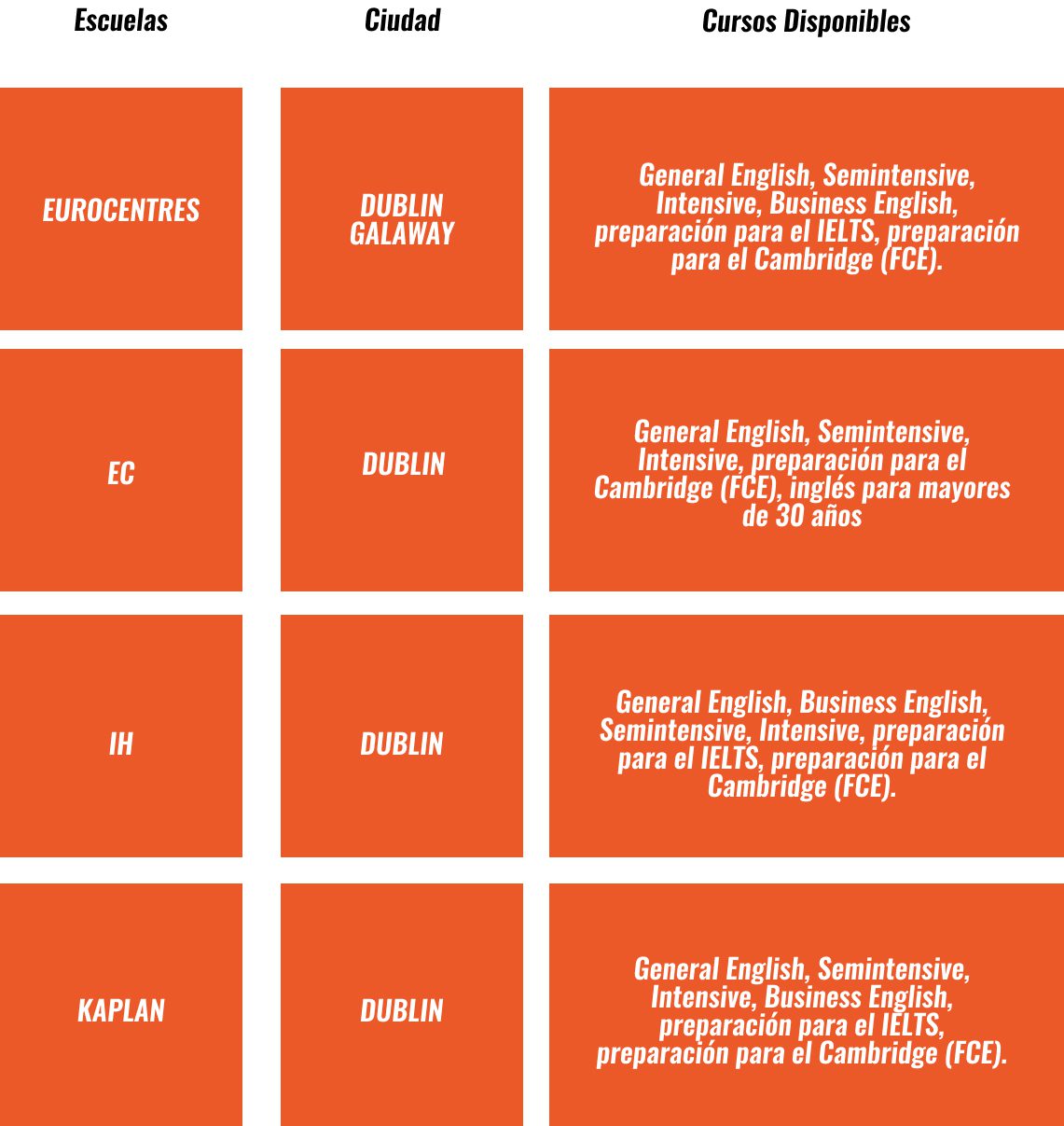 - Un amplio y cuidadosamente seleccionado portafolio de escuelas y cursos en las ciudades más importantes de Irlanda.